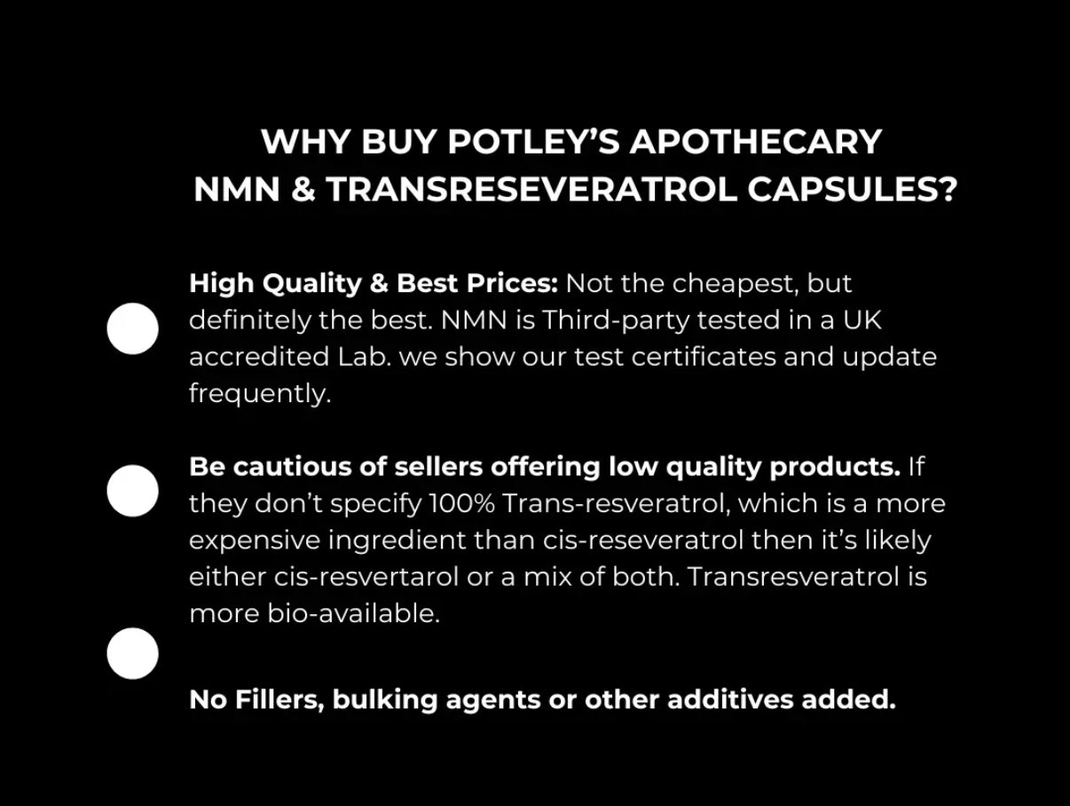 - NMN: Rigorously tested in a UK-accredited lab to ensure the highest quality and potency.